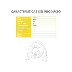 Toma de tierra: SíMarcado: CE, GSVDE: SíPeso con embalaje: 435 gramosSección de cables: 1,5 mm²Tipo de cable: H05VV-FTensión: 250 voltiosCorriente nominal: 16 ASolicitud: Para interioresColor: BlancoLongitud: 3 metrosPoder máximo: 3.500WMaterial: Caucho y cobre