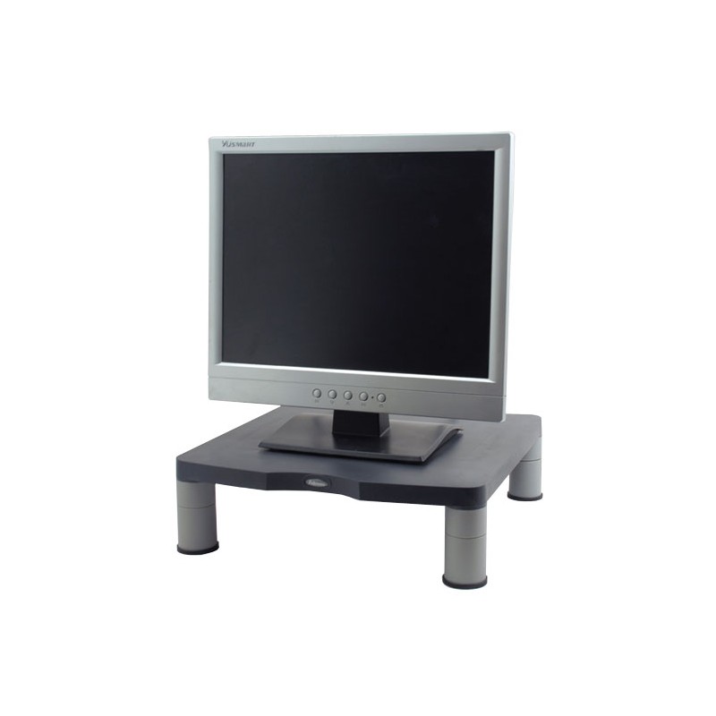 Fellowes 9169301. Máximo peso (capacidad): 36 kg, Tamaño máximo de pantalla: 53,34 cm (21"). Rango de ajustes de altura: 50 - 100 mm. Color del producto: Grafito, Materiales: De plástico. Ancho: 34 cm, Profundidad: 34 cm, Altura: 10,2 cm