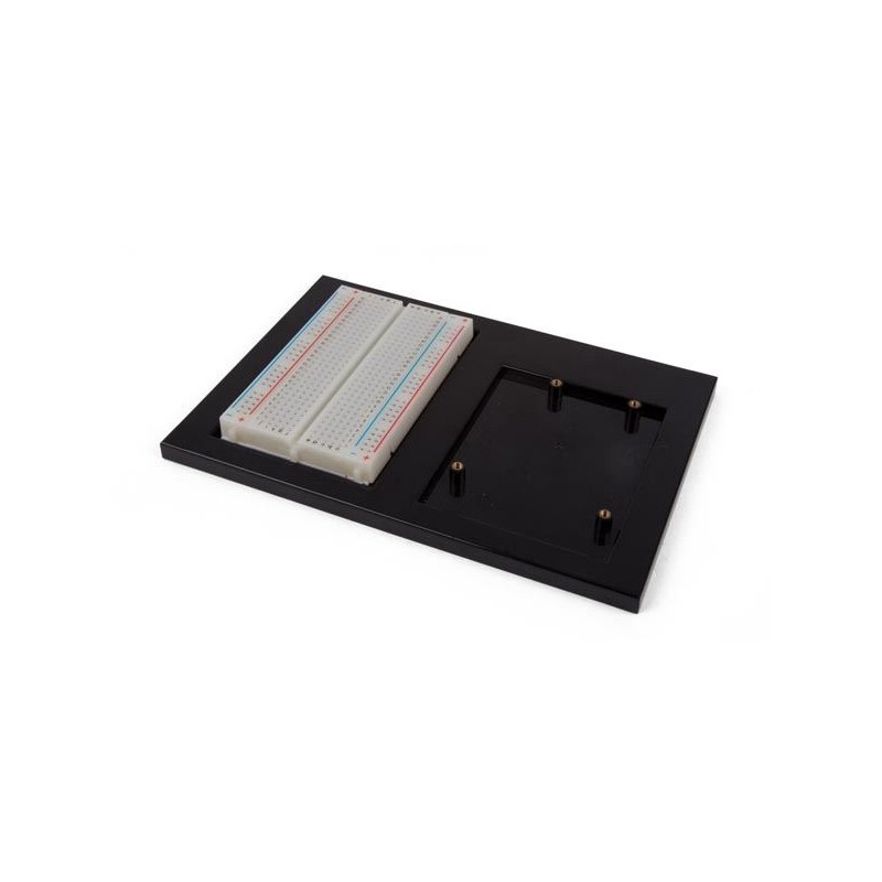El soporte permite fijar la Arduino® UNO y la placa de pruebas. Incluye dos ranuras. La ranura de 88 x 60 mm es apta para fijar una placa de pruebas de 400 puntos. La otra ranura sirve para fijar la Arduino® UNO. La posición de los 4 agujeros para los tornillos coicide con los del Arduino UNO. Especificaciones: Dimensiones: 160 x 106mm. Dimensiones máx. de la placa de pruebas: 88 x 60mm. Peso: 50gr. NO incluye la placa Arduino.