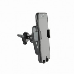 Soporte para smartphone para coche con cargador inalámbrico rápido, 10 W. Soporte universal para coche para smartphone con cargador inalámbrico Qi inalámbrico incorporado. Función de carga Qi inalámbrica rápida de 10 W para cargar su teléfono mientras conduce. Práctico sistema de bloqueo automático, adecuado para usar con teléfonos de 65 a 85 mm de ancho. Soporte para teléfono giratorio / inclinable con una fijación segura en casi cualquier ventilación