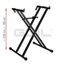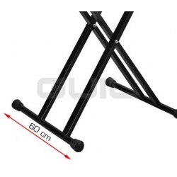 - Fabricado totalmente en acero con acabado en pintura negra texturada antirralladura. - Dotado de tacos, topes de seguridad y goma antideslizante para evitar vibraciones, proteger y estabilizar el teclado. - Regulable en altura y amplitud mediante un sistema de rueda dentada metálica (múltiples posiciones). - A este modelo se le puede adaptar un segundo y tercer teclado con los adaptadores Ref. STA-05 y Ref. STA-06.