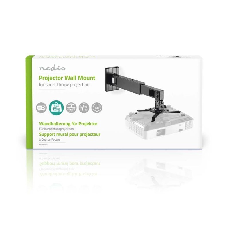 Soporte pared proyector, max.15Kg Nedis.Brazo telescópico con diseño de columna que permite una colocación perfecta del proyector Función de inclinación para lograr el mejor ángulo de visión. Función de rotación que ofrece la máxima flexibilidad de visualización. Función de giro para obtener ángulos de visión óptimos. Organizador de cables integrado para mantener el espacio organizado.