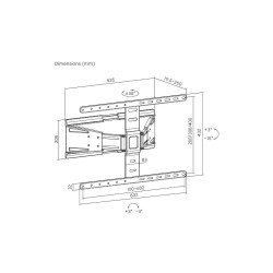 Soporte TV 43/90" movimiento completo max.50kgSoporte de pared ultradelgado para TV con microespacio de movimiento completoAdecuado para la mayoría de las pantallas de TV de gran tamaño de 43" a 90" Ajustes de nivelación (+3° a 3°)Mínima distancia de la pared 19.6 mmFuncionalidad: Rotación Completa VESA: 100x200, 200x200, 200x300, 300x200, 200x400, 400x200, 300x300, 300x400, 400x300, 600x200, 400x400, 600x300, 600x400