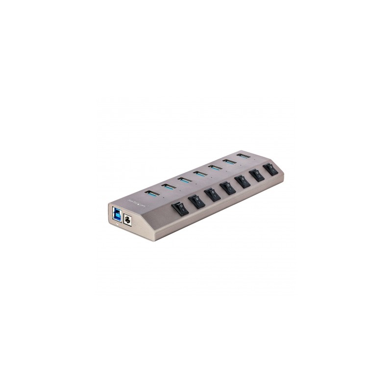 StarTech.com Hub USB-C Autoalimentado de 7 puertos con Interruptores Individuales - Concentrador USB 3.0 a 5 Gbps con Fuente de Al...
