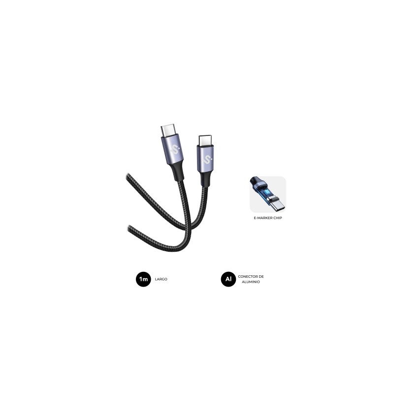Descubre el nuevo SUBBLIM PLUS Cable USB C a USB C de 1 metro, diseñado para ofrecerte la máximavelocidad de carga y la mejor transferencia de datos. Con una potencia de hasta 100W, este cable escapaz de llevar tu dispositivo de 0% a un nivel de batería impresionante en apenas unos minutos. Gracias asu chip E-Marker inteligente, ajusta de forma automática la potencia necesaria para cada dispositivo,evitando posibles sobrecargas o sobrecalentamientos y ofreciendo así una mayor seguridad.Este cable admite PD 3.0 y QC 3.0, logrando resultados sorprendentes en teléfonos, tablets y portátiles deúltima generación. Podrás cargar tu iPhone 15 hasta un 71% en tan solo 30 minutos o un MacBook Pro de2023 hasta un 42% en el mismo tiempo, superando en un 58% la velocidad de los cables de 60W. Además,su transferencia de datos de 480Mbps permite que pases fotos, vídeos y documentos rápidamente,aunque recuerda que no es compatible con salida de vídeo.La construcción premium del SUBBLIM PLUS se refleja en sus resistentes conectores de aluminio y en elTPE Flexible de alta pureza, capaz de aguantar más de 25.000 flexiones sin perder rendimiento.Compatible con la mayoría de dispositivos USB-C, como iPhone 15, Samsung Galaxy S24/S23/S22,MacBook, iPad Pro, Huawei, OnePlus y Google Pixel, este cable se convertirá en tu mejor aliado para lacarga rápida y la transferencia de datos.Para completar la experiencia, cuentas con 36 meses de garantía y un servicio de atención al clientedisponible para resolver cualquier duda o problema. Elige SUBBLIM y lleva tu carga al siguiente nivel.
