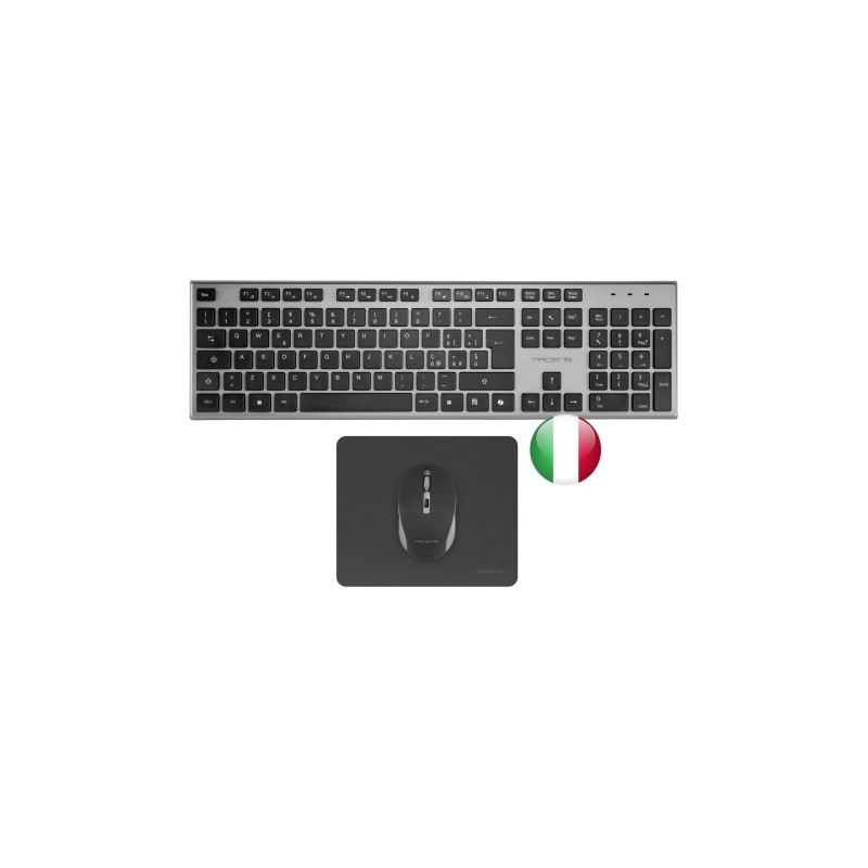 - Hogar / Oficina - RF inalámbrico Interruptor de membrana - QWERTY Italiano - Completo (100%) Teclado numérico - Teclas de Windows - Ratón incluido - Gris - 3 pieza(s)