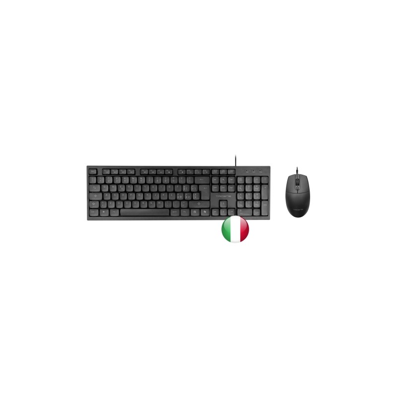 - Hogar / Oficina - USB Interruptor de membrana - QWERTY Italiano - Completo (100%) Teclado numérico - Teclas de Windows - Ratón incluido - Negro - 2 pieza(s)