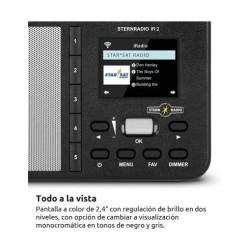 TechniSat STERNRADIO IR 2 - Radio por Internet (Wi-Fi, Pantalla a Color, Despertador, Temporizador, AUX, repetición de Alarma, Teclas de selección Directa, Control de aplicación), Color NegroMarca TechniSatColor NegroFunción especial Radio por Internet a través de WiFi, control mediante la aplicación AirMusic Control App, transmisor de radio para dormir, función de alarma, repetición y sueño, batería intercambiable, memoria favorita para hasta 250 transmisores de radio por InternetRadio por Internet a través de WiFi, control mediante la aplicación AirMusic Control App, transmisor de radio para dormir, función de alarma, repetición y sueño, batería intercambiable, memoria favorita para hasta 250 transmisores de radio por InternetTecnología de conectividad Auxiliar, WifiDimensiones del producto 18l. x 5an. x 10,8al. centímetrosTecnología del sintonizador Radio de InternetEstilo Portátil con bateríaFuente de alimentación Funcionamiento con red eléctrica o bateríaBandas de radio compatibles InternetradioComponentes incluidos STERNRADIO IR 2, Adaptador de corriente, manual de instrucciones, bateríaLa radio por Internet móvil permite recibir con gran calidad de sonido miles de emisoras de radio por Internet a través de su WLAN integrado, de forma espontánea y flexible, en cualquier lugar donde haya conexión WLAN.El altavoz de 2 vatios proporciona un buen sonido. El ecualizador adicional ofrece ajustes de audio adicionales, y el interruptor de red permite desconectar completamente la radio de la corriente eléctricaLa pantalla a color de 2,4 pulgadas se puede atenuar y cambiar a una vista monocromática. Además de la fecha y la hora, también se pueden mostrar datos meteorológicos en modo de esperaIdeal como despertador de radio: función de radio para dormir con sonidos para conciliar el sueño y despertarse, volumen y ritmo de alarma ajustables (diario, días laborables, fines de semana), temporizador de apagado y repeticiónContenido del paquete: radio por Internet STERNRADIO IR 2 (negro), portátil, adaptador de corriente, batería, manual de instrucciones, dimensiones del producto (ancho x alto x profundidad): 18 x 10,8 x 5 cmNOTA: No cargue el dispositivo al aire libre, en habitaciones húmedas o en lugares donde se esperan temperaturas muy altas (por ejemplo, en un cobertizo de jardín o detrás del parabrisas de un automóvil)