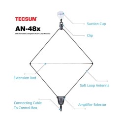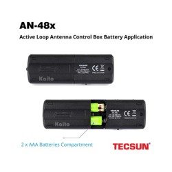 Tecsun AN-48X Antena de radio AM/LW/SW de bucle activo interiorDiseñado para mejorar las recepciones de radio en todas las bandas de AM (modulación de amplitud), incluyendo onda corta, onda media y onda largaAmplia cobertura de frecuencia, AM: 520-1700 KHz, SW: 3.50-20.00 MHz, LW: 120-400 KHzSe requieren 2 pilas AAA (no incluidas)Incluye varios cables de conexión y accesorios, compatible con prácticamente todos los tipos de radiosSolo para uso en interioresCompatibilidad universal.Funciona con todo tipo de radios, portátiles o mesas, con o sin una entrada de antena externa.Cobertura de frecuencia:LW: 120 – 400 KHzAM/MW: 520 – 1700 KHzSW: 3.500 – 20.000 KHz.Fácil funcionamientoDespués de conectar la antena a la radio, sintonice la radio a la estación de radio que se recibirá.Cambie el selector de banda de la antena a la banda de frecuencia correspondiente, AM, SW o LW, y la alimentación en la caja de control.Ajuste tanto la frecuencia y los perillas de nivel de señal para mejorar la señal.Amplicaciones alimentadasFunciona con 2 pilas AAA de tipo común (no incluidas).Cómo conectarse0.138 in TRS macho - 0.138 in TRS cable macho para portátiles, por ejemplo: Tecsun PL880, PL660, PL600, Kaito KA1101.335 in TRS hembra - Cable BNC macho para tableros de mesa, por ejemplo: Tecsun S-2000, S-8800, CR1100DSP0.138 in TRS hembra - Cable RCA macho para tableros de mesa 0.138 in TRS hembra - Clips de cocodrilo negro/rojo para radios sin entrada de antena externa, por ejemplo: Kaito Voyager KA500, KA600, KA700, y KA900