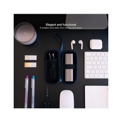Estuche compacto para guardar o transportar disco duro portátil. Material exterior rígido.