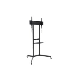 - Capacidad máxima de peso: 70 kg - Tamaño mínimo de pantalla: 94 cm (37") Tamaño máximo de pantalla: 177,8 cm (70") Piso - Compatibilidad con interfaz de montaje (min): 100 x 100 mm Compatibilidad con interfaz de montaje (max): 600 x 400 mm - Número de pantallas soportadas: 1 - Ajustes de altura Ajuste de la inclinación - Gestión de cables - Acero Negro
