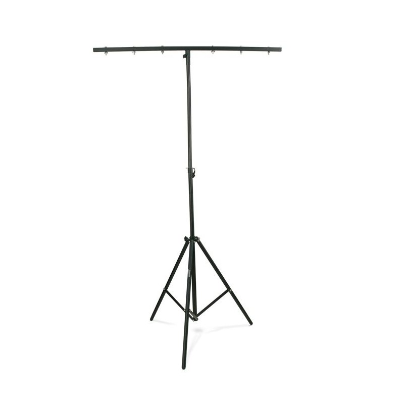 Soporte de iluminación con una barra horizontal para fijar hasta 6 focos tipo PAR. Fabricado en hierro y acabado en color negro, incorpora un sistema de plegado de patas y mástil extensible de hasta 3.1 m. Su base fi rme y equilibrada asegura un funcionamiento seguro. Soporta cargas de hasta 60 Kg. Accesorios disponibles: CP 1, P 2, AW 2, AW 11, AW 137, AW 215, AW 237, AW 500 y AW537. Peso: 7,3 kg. Carga máxima: 60 kg. Altura mínima: 1,45 m. Altura máxima: 3,10 m. Diametro: 35 mm. Dimensiones deplegado: 0,13 m.