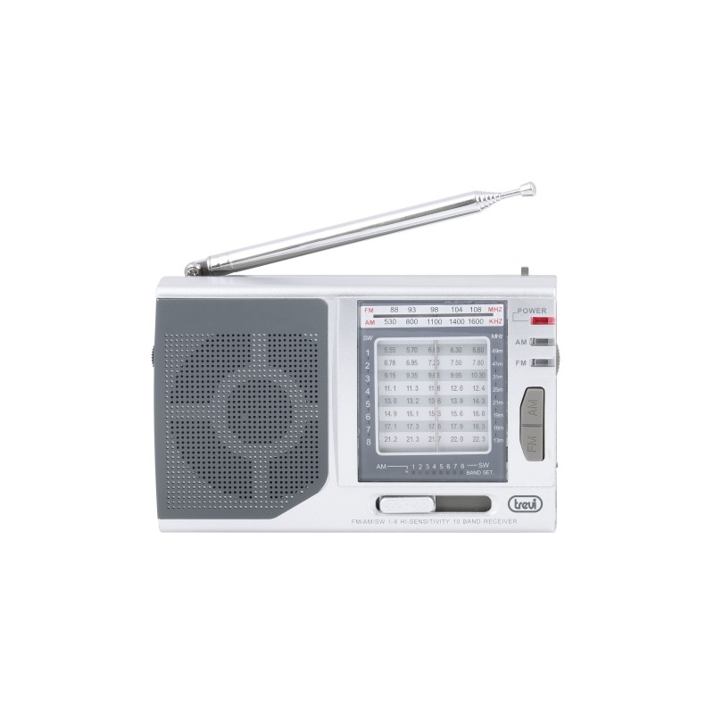 Características - Portátil Analógica 0,1 W Plata - AM, FM, SO - Altavoces incorporados De 1 vía 32 Ω - Analógica Pantalla incorporada - Enchufe de entrada de CC Especificaciones Radio Tipo de radio: Portátil Tipo de sintonizador: Analógica Bandas de radio soportadas: AM, FM, SO Banda FM: 87,5 - 108 MHz Banda AM: 520 - 1620 kHz SW rango de banda: 8550 - 22300 kHz Audio Potencia estimada RMS: 0,1 W Altavoces Altavoces incorporados: Si Número de altavoces incorporados: 1 Tipo de altavoces: De 1 vía Obstrucción: 32 Ω Exhibición Pantalla incorporada: Si Tipo de visualizador: Analógica Puertos e Interfaces Salidas para auriculares: 1 Auriculares: 3,5 mm Enchufe de entrada de CC: Si Características Reproducción MP3: No Proyección: No Color del producto: Plata Coloración: Monocromo Control de volumen: Giratorio Tipo de antena: Externo Indicadores LED: Si Interruptor de encendido/apagado integrado: Si Batería Numero de baterías soportadas: 2 Tamaño de baterías compatibles: AA Voltaje de la pila: 3 V Control de energía Fuente de energía: CC/Batería Peso y dimensiones Ancho: 120 mm Profundidad: 32 mm Altura: 70 mm Detalles técnicos Certificados de conformidad: CE Empaquetado Ancho del paquete: 100 mm Profundidad del paquete: 40 mm Altura del paquete: 84 mm