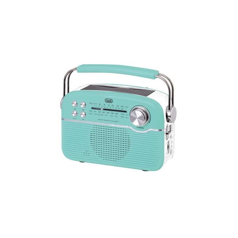 Características - Personal Analógica Verde - AM, FM, SO - Altavoces incorporados - Bluetooth - Conexión USB - Reproducción MP3 - MicroSD (TransFlash) - Litio 1500 mAh Especificaciones Radio Tipo de radio: Personal Tipo de sintonizador: Analógica Bandas de radio soportadas: AM, FM, SO Altavoces Altavoces incorporados: Si Exhibición Pantalla incorporada: No Conexión Bluetooth: Si Puertos e Interfaces Conexión USB: Si Puerto de carga USB: Si Conector USB: USB Tipo C Características Reproducción MP3: Si Proyección: No Color del producto: Verde Coloración: Monocromo Control de volumen: Giratorio Medios de almacenaje Tarjeta de lectura integrada: Si Tarjetas de memoria compatibles: MicroSD (TransFlash) Batería Tecnología de batería: Litio Capacidad de batería: 1500 mAh Control de energía Fuente de energía: USB/Solar Peso y dimensiones Ancho: 230 mm Profundidad: 86 mm Altura: 192 mm Peso: 980 g Empaquetado Ancho del paquete: 250 mm Profundidad del paquete: 110 mm Altura del paquete: 220 mm
