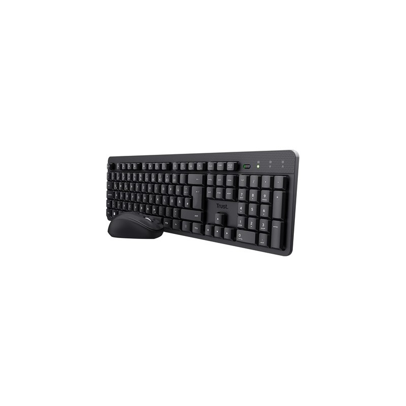 Pack de teclado y ratón inalámbricos y silenciosos para trabajar cómodamente durante horasOficinaRF inalámbrico Interruptor de membranaQWERTY EspañolCompleto (100%) Teclado numéricoAltura de teclado ajustableRatón incluidoColor negro2 pieza(s)Trust TKM-360. Formato del teclado: Completo (100%), Interfaz del dispositivo: RF inalámbrico, Interruptor del teclado: Interruptor de membrana, Diseño de teclado: QWERTY, Uso recomendado: Oficina. Color del producto: Negro. Ratón incluidoCaracterísticasMarca: TrustNombre de producto: TKM-360Código del producto: 25356Código EAN/UPC: 8713439253566DescripciónPack teclado y ratón inalámbricos y silenciososPack de teclado y ratón inalámbricos y silenciosos para trabajar cómodamente durante horasTecladoUso recomendadoOficinaInterfaz del dispositivoRF inalámbricoInterruptor del tecladoInterruptor de membranaDiseño de tecladoQWERTYIdioma del tecladoEspañolDispositivo apuntadorFormato del tecladoCompleto (100%)Teclado numéricoPerfil de tecladoPerfil bajoTeclas de acceso directoTeclas multimediaTeclas silenciosasInterruptor de encendido/apagado integradoAltura de teclado ajustableColor del productoNegroColoración de superficieMonocromoMaterialAcrilonitrilo butadieno estireno (ABS)Funciones de protecciónResistente a derramesIndicadores LEDControl de energíaAlimentación BateríaTeclado tipo de batería AAANúmero de pilas (teclado) 2Tecnología de batería AlcalinaRatónRatón incluidoFactor de formaAmbidextroTecnología de detección de movimientosÓpticoResolución de movimiento1600 DPITipo de botonesBotones presionadosRueda de desplazamientoTipo de desplazamiento RuedaDirecciones de desplazamiento VerticalRatón tipo de batería AATecnología de la batería del ratón AlcalinaNúmero de pilas (ratón) 1Interruptor de encendido/apagado del ratónRequisitos del sistemaSistema operativo Windows soportadoWindows 10, Windows 11Sistema operativo MAC soportadoMac OS X 11.0 Big Sur, Mac OS X 12.0 Monterey, Mac OS X 13.0 VenturaOtros sistemas operativos soportados ChromeOSPeso y dimensionesDimensiones de teclado (Ancho x Profundidad x Altura) 422 x 136 x 37 mmPeso del teclado 473 g