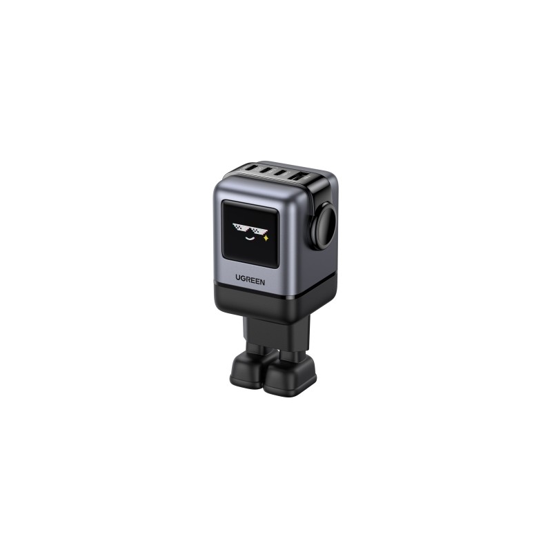 UGREEN Uno: Presentamos nuestro futurista y adorable cargador UGREEN Uno, un pequeño cargador con forma de robot que combina funcionalidad y diversión, ¡lo que lo convierte en el accesorio perfecto para todas tus necesidades de carga!Carga Rápida de 100W: UGREEN cargador USB-C rápido puede cargar tu MacBook Pro de 16" al 43 % o tu iPhone 16 Pro al 60 % en solo 30 minutos (con un solo puerto).Nota: Para las computadoras Dell, debido a las limitaciones de la propia computadora, este cargador admite hasta 65 W y pueden aparecer indicaciones de bajo consumo. Incompatible con WARPcharge (OnePlus), VOOC (OPPO), POCO Super Charge (Xiao Mi) y realme Super Charge.Pantalla Inteligente TFT: la mini pantalla inteligente muestra el estado de carga en tiempo real mientras se carga o cuando finaliza la carga. Un pequeño consejo: la pantalla LED sólo se enciende cuando el cargador está conectado.Uno para Todos: Con 3 puertos USB-C y 1 puerto USB-A, puedes cargar hasta 4 dispositivos simultáneamente. Admite protocolos de carga rápida como PD 3.0/ 2.0, Galaxy PPS 45W/ 25W, QC 4+/ 4.0/ 3.0 y SCP.Protección Total: UGREEN Uno enchufe USB-C está equipado con múltiples protecciones contra sobretensión, sobrecalentamiento, sobrecorriente y cortocircuito para garantizar una carga segura.