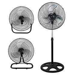 • Ventilador 3 en 1. Adaptable, permite su uso como ventilador de pie, ventilador de suelo o de pared.• Diámetro de 45 cm que aumenta la conbertura de aire fresco en la estancia.• Sistema formado por 3 aspas de aluminio diseñadas para maximizar el flujo y caudal de aire fresco.• 3 velocidades de ventilación.• Cabezal orientable.• Barra telescópica ajustable en altura hasta los 130 cm.• 60W.