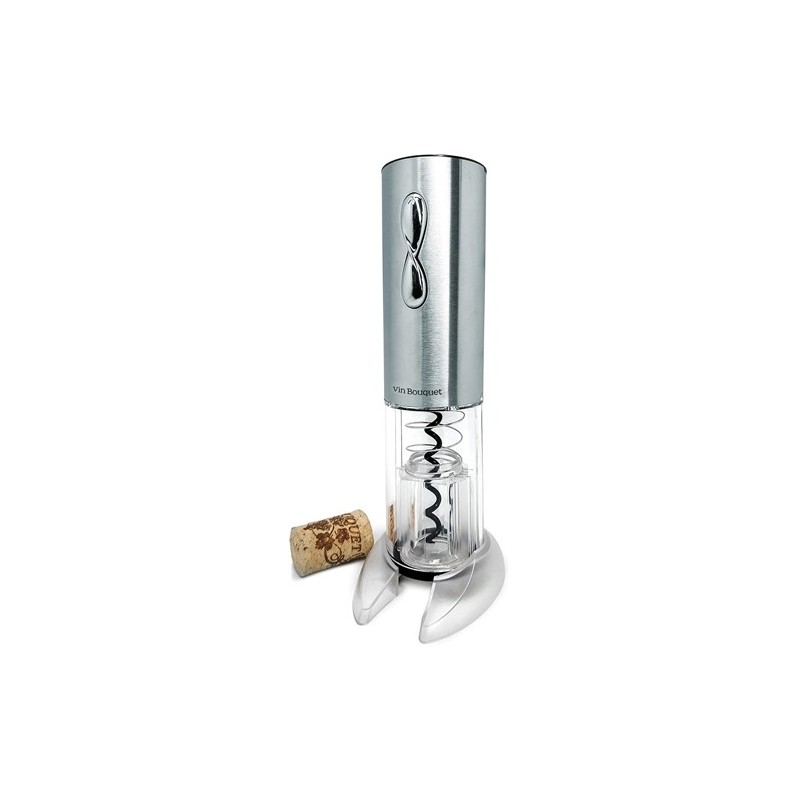 VB VIN BOUQUET FID 004 Sacacorchos eléctrico Compact, Incluye descapsulador y Cargador, Manganese Steel, Plata, 18 x 26.5 x 5.5 cmMaterial Acero aleado, ABSColor PlataMarca VB VIN BOUQUETDimensiones del producto 26,5l. x 18an. centímetrosNúmero de productos 1Núm. de identificación comercial global 08422878000043Sorprendente: sorprende a tus invitados con este práctico abridor de botellas, conseguirás abrir tus botellas de vino en apenas 8 segundos, incluye un descapsulador para cortar el precinto del vino y a su vez hace función de base del descorchador para apoyarlo en cualquier lugarElegante: con unos acabados muy cuidados con efecto metalizado gracias a su material de acero al manganeso abs, la parte transparente del sacacorchos permite ver el mecanismo de extracción del corcho a la vez que se ilumina con una luz ledInalámbrico: producto recargable cuya carga sirve para descorchar 30 botellas aproximadamente, recomendamos que recargue su descorchador eléctrico durante al menos 10 horas para su primer uso, no es necesario el uso de pilasRegalo perfecto: estamos seguros de que gustará nuestro sacacorchos compact y por ello estamos convencidos de que es el regalo perfecto para todos aquellos amantes del vino y acertaras en esos días como el día del padre, un cumpleaños o cualquier regalo para aquellos personas que les gusta disfrutar del vinoPara evitar daños, no fuerce al separar el descapsulador del descorchador y evite el contacto con el aguaMaterial: manganese steel absTipo de material: Manganese steel PlásticoSacacorchos Eléctrico Compact Vin Bouquet - FID004CaracterísticasIncluye un descapsulador para cortar el precinto del vino y a su vez hace función de base del descorchador para apoyarlo en cualquier lugarRecomendamos que recargue su descorchador eléctrico durante al menos 10 horas para su primer usoProducto recargable cuya carga sirve para descorchar 30 botellas aproximadamentePara evitar daños, no fuerce al separar el descapsulador del sacacorchos y evite el contacto con el aguaMaterial: Manganese steel &, ABSMantenga el descorchador en un lugar seco o en su base cuando no esté en usoPara evitar daños al descapsulador y al descorchador, no lo fuerce para separarlos ni para unirlosLa espiral es un objeto punzante. Manéjelo con cuidadoUna luz LED se encenderá mientras se recargaAbrir botellas de vino rápidamenteExtraer el corcho solo te llevará de 6 a 8 segundos. Abrir una botella de vino nunca ha sido tan sencillo y con nuestro sacacorchos Compact sorprenderás a tus invitados gracias a su diseño y desempeño.Hasta 30 BotellasNuestro sacacorchos Eléctrico Compact es capaz de abrir hasta 30 botellas con una sola carga.Se recomienda cargar el descorchador Eléctrico Compact durante al menos 10 horas en su primera carga para un correcto funcionamiento.El regalo perfectoEstamos convencidos de que nuestro Sacacorchos Eléctrico Compact será un acierto como regalo para aquello amantes del vino y un producto a tener muy en cuenta para aquellas fechas tan especiales como el Día del Padre, Cumpleaños, Navidades, ¡Seguro que acertarás!