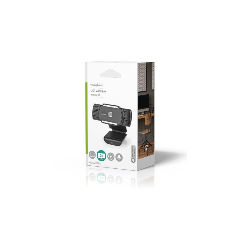 Webcam Pro USB 2KHD Nedis 110BK.Tecnología Fixed Focus y vídeos nítidos con una resolución de hasta 2592 x 1944 píxeles y hasta 30 fps.Micrófono integrado con supresión de ruido para mejorar la calidad de la voz.Compatible con la mayoría de aplicaciones de streaming (YouTube, Skype, Zoom, Twitch, Xbox Live)Conexión de ¼” que permite montar la webcam en un trípodeProtección de la privacidad gracias a la tapa de la lente