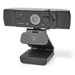 Webcam Pro USB 4KHD Nedis 120BK con resolución hasta Ultra HD 4K y micrófono estéreo. Tecnología Fixed Focus y vídeos nítidos con una resolución de hasta 3840 x 2160 píxeles y hasta 30 fps.Micrófono dual integrado con supresión de ruido y sonido ultranítido para mejorar la calidad de la voz.Objetivo gran angular y compatible con la mayoría de aplicaciones de streaming (YouTube, Skype, Zoom, Twitch, Xbox Live) Conexión de ¼ que permite montar la webcam en un trípode.Protección de la privacidad gracias a la tapa de la lente.