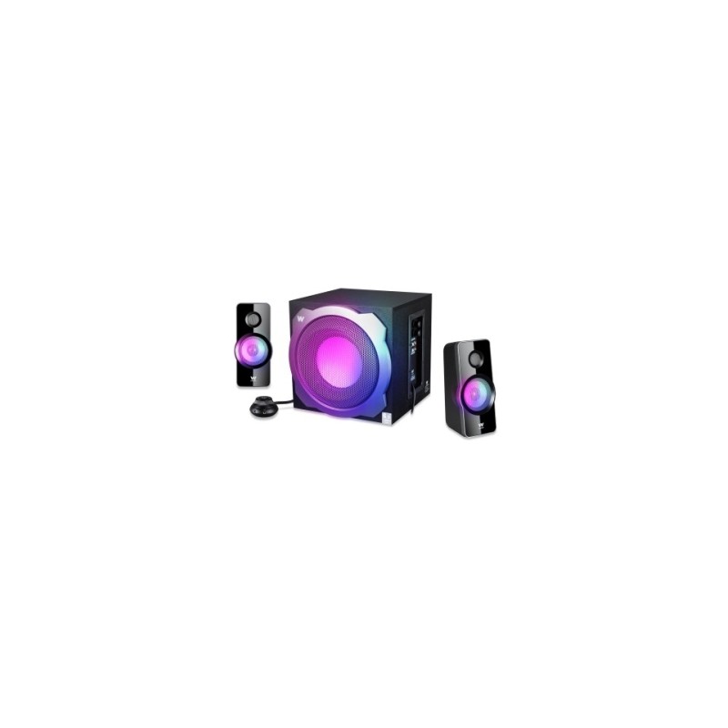 Transforma tu habitación con estos altavoces con LEDs integrados, ideales para crear un ambiente único y dinámico. Con varios modos de iluminación personalizables, puedes adaptar el color y la intensidad de las luces al ritmo de la música o según tu estado de ánimo. Perfectos para añadir un toque moderno y vibrante a tu espacio mientras disfrutas de un sonido de alta calidad. ¡Haz que cada momento en tu habitación sea especial con estos altavoces decorativos!En la nueva gama de altavoces Big Bass de Woxter, no podía faltar este sistema de altavoces 2.1 ideal para utilizarlo con PC multimedia y equipos de sonido estéreo.Los nuevos altavoces Big Bass 260 RGB, son la solución perfecta para los que desean disponer de toda la magia del sonido multimedia, el subwoofer aporta los matices más graves logrando una novedosa calidad de sonido en su equipo informático.Incorpora un potente amplificador de alta fidelidad dentro del altavoz super-bass. Este equipo puede utilizarse con cualquier dispositivo que tenga salida de señal de audio como un ordenador, un reproductor de VCD, CD, DVD, TV, equipos de audio-vídeo, etc... Además está sellado magnético, pudiendo situarse al lado de la pantalla del ordenador o la TV sin causar interferencias.Sistema de altavoces 2.1 con 150W y subwoofer Woxter Big Bass 260 RGBPotencia: 150 W.Incorpora conectividad Bluetooth, disfruta de tu música sin cables.Leds incorporados con varios modos de iluminaciónControl de volumen ergonómico con cable y doble conexión : Conexión auriculares. Entrada de audio.Frecuencia de respuesta: Subwoofer 50 Hz- 130 Hz , Satélites: 160 Hz- 20Khz.S/N > 65 dB. Separación > 35 dB.Altavoces: 6.5\'\'x1 (4 Ohms) +2 satélites 3\'\' (4 Ohms)Medidas: Subwoofer 26x27x25 cm (ancho x alto x fondo) / satélite 10,5x21x9 cm (ancho x alto x fondo)Funciona perfectamente con tarjetas de sonido PC, DVD/CD, reproductores de MP3,de audio portátil y otras fuentes de audio.