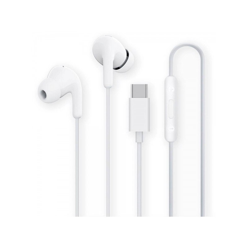 Auriculares Xiaomi blancos con conector USB tipo C, controlador de 12.4mm y micrófono HD con cancelación de ruido para llamadas