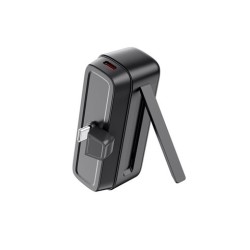 XO Mini Bateria Externa Portatil 5000mAh Usb -C Integrado Negra Con Soporte Para Movil