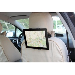 Soporte de tableta para coche. Universal: se adapta a todos los iPads y la mayoría de las otras tabletas. Fácil fijación en el apoyo para la cabeza de los asientos delanteros. Entretenga a sus niños en los viajes largos en coche