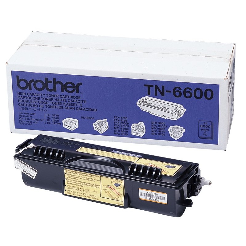 Brother TN-6600 Tóner are compatible con Brother DCP-1200 / DCP-1400 / Fax 4750 / Fax 5750 / Fax 8350P / Fax 8360 P / Fax 8360 PLT / Fax 8750P / Intellifax 5750 / HL-1030 / HL-1220 / HL-1230 / HL-1240 / HL-1250 / HL-1270 / HL-1430 / HL-1440 / HL-1450 / HL-1470 / HL-P2500 / MFC-8300 / MFC-8500 / MFC-8700 / MFC-9650 / MFC-9660 / MFC-9750 / MFC-9760 / MFC-9850 / MFC-9860 / MFC-9870 / MFC-9880