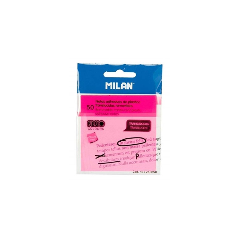 50 NOTAS ADHESIVAS REMOVIBLES MILÁN TRANSLÚCIDAS ROSA FLUO 411260850