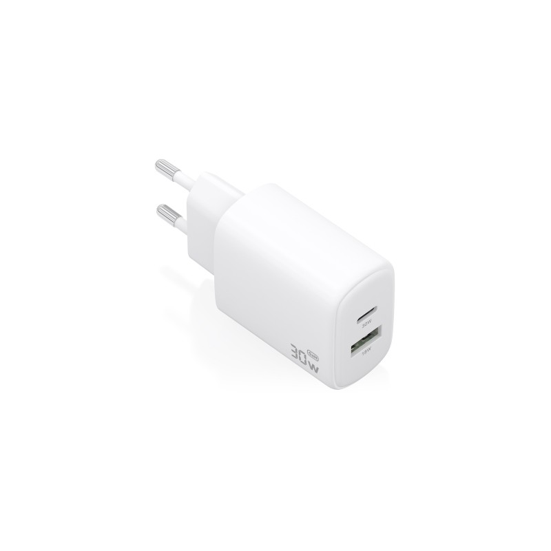 AISENS Cargador GaN 30W 1xUSB-C PD3.0 QC4.0 1xUSB-A QC3.0 Blanco