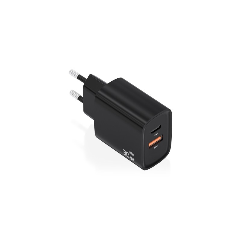 AISENS Cargador GaN 30W 1xUSB-C PD3.0 QC4.0 1xUSB-A QC3.0 Negro