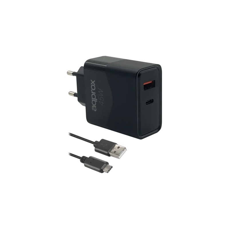 Approx APPUSBWALL45W Cargador 45W QC 1x USB A + 1 x USB C+Cable