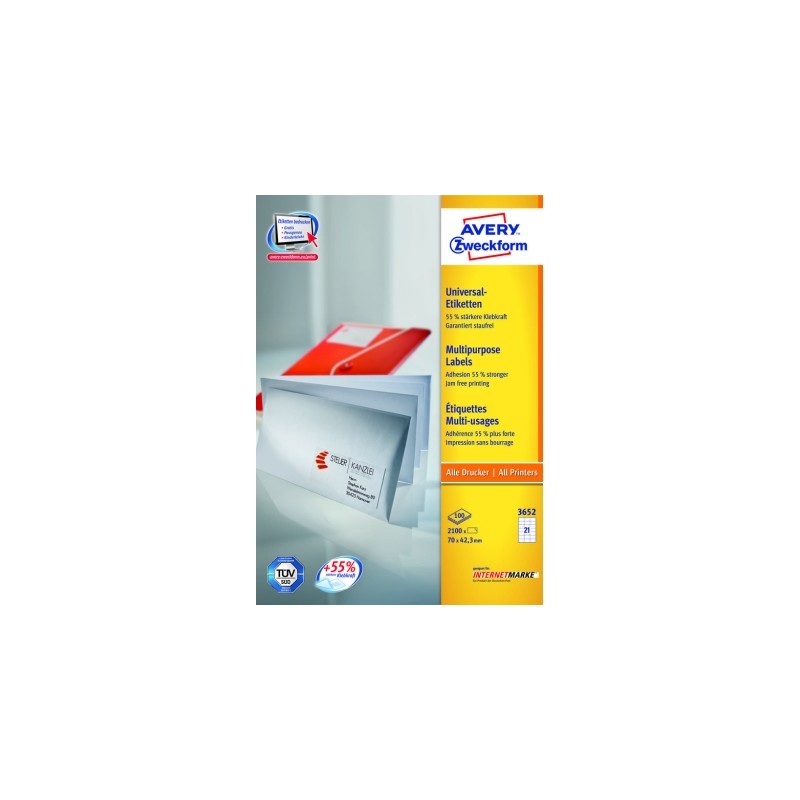 Avery 3652Z etiqueta autoadhesiva Rectángulo Blanco 2100 pieza(s)