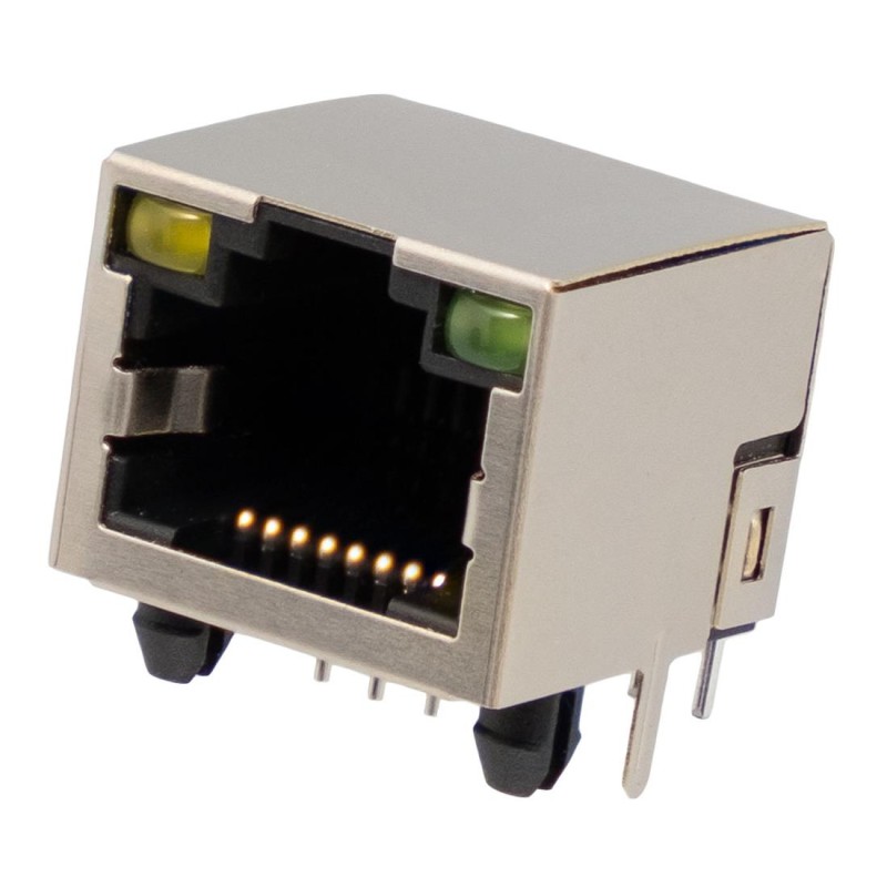 Base RJ45 STP 50U" (8P8C) para circuito impreso acodada con LEDs