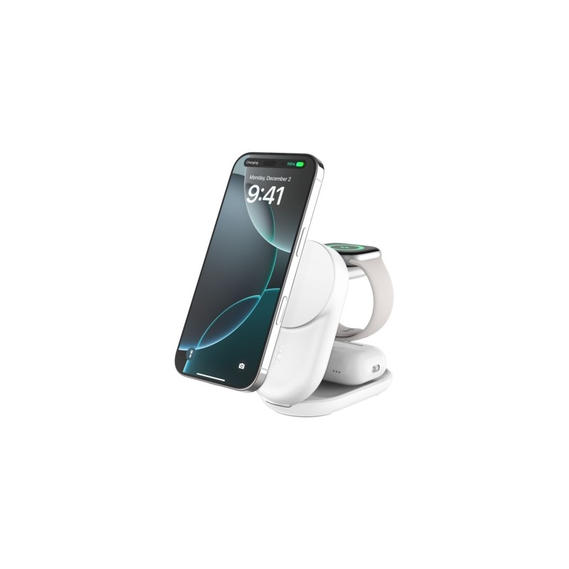Belkin Qi2 Fitness tracker Auriculares Smartphone Reloj inteligente Blanco USB Cargador inalámbrico Carga rápida Interior