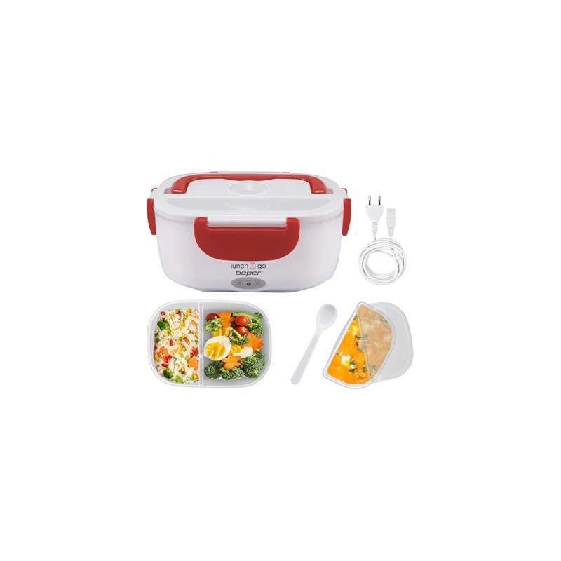 BEPER Fiambrera Electrica Con 2 Recipientes Extraibles 1000ml-450ml Con Cuchara 40W 220V Blanca Roja