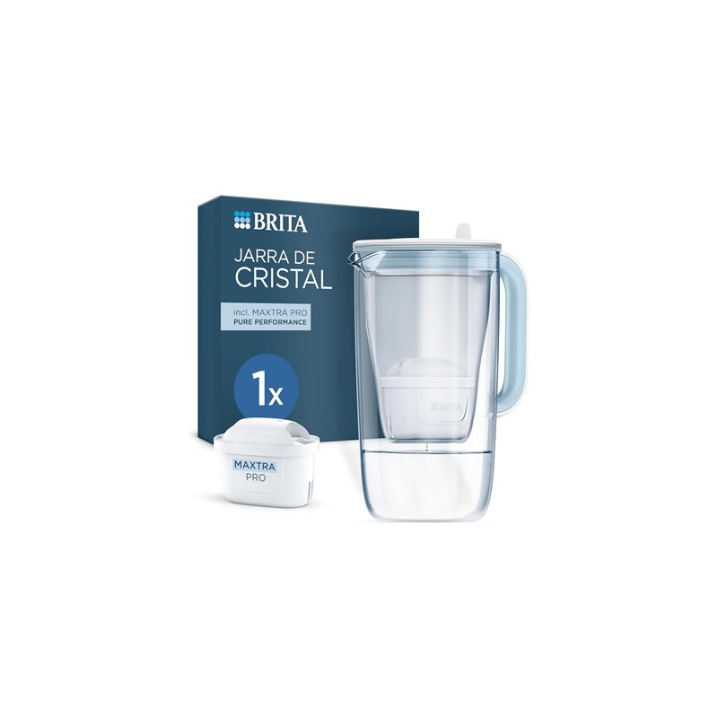 BRITA Jarra de Agua Filtrante de Cristal 2.5L Azul Incluye 1 Filtro MAXTRA PRO