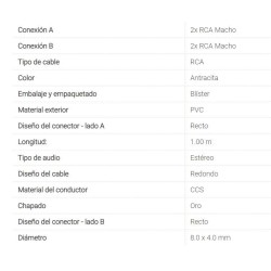 Cable audio 2 RCA macho/2 RCA macho 1mts NEDIS
