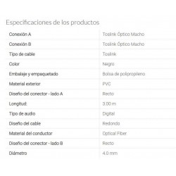 Cable audio fibra optica Toslink Toslink 3m