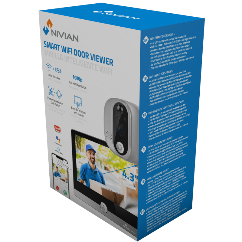 CAMARA VIGILANCIA MIRILLA INTELIGENTE NIVIAN / WIFI / 1080P / VISION NOCTURNA / DETECCION POR PIR / AUDIO BIDIRECCIONAL / 500