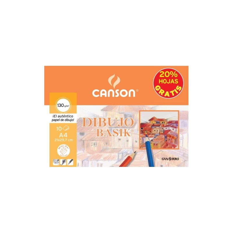 Canson Minipack de 10 Hojas de Dibujo Basik Liso 21x29.7 130g - 20% Hojas Gratis - Color Blanco