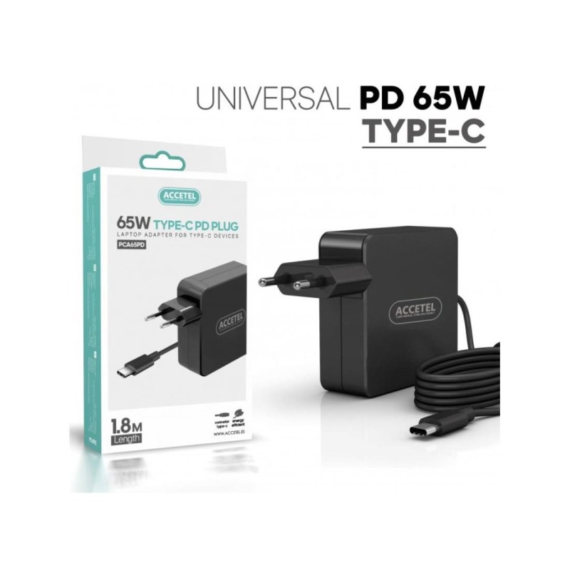 Cargador 65W USB-C Accetel carga rapida PD