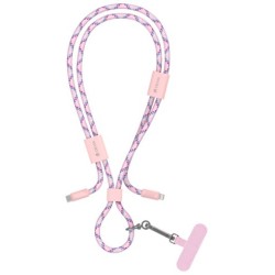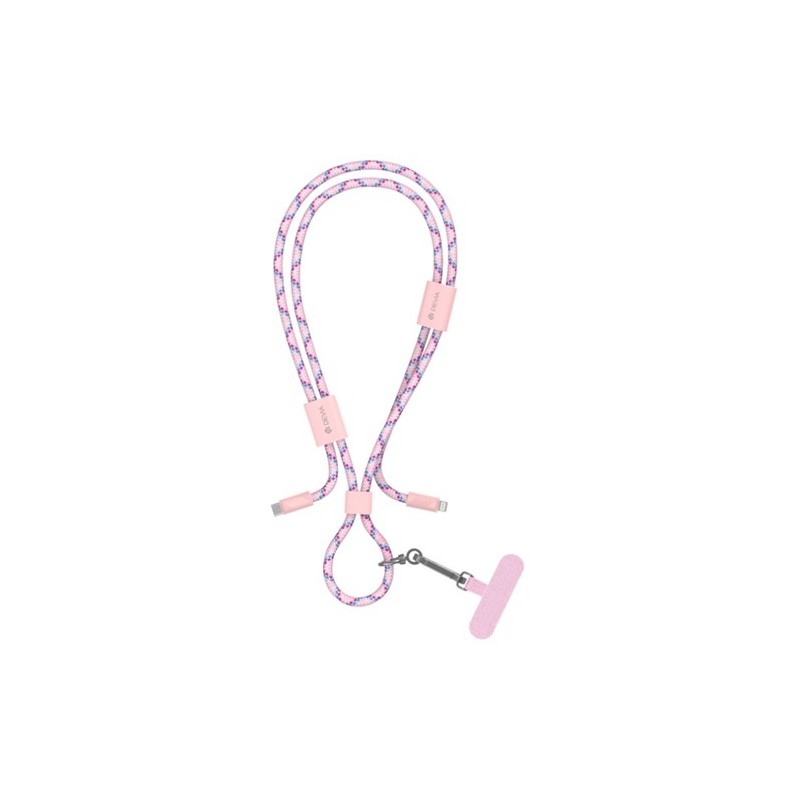 DEVIA 2 En 1 Cable Datos Lightning A Tipo C 3A 27W + Colgador Movil Ajustable 1.6Mtrs Nylon Rosa