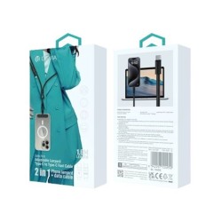 DEVIA 2 En 1 Cable Datos Tipo C M/M 3A 60W + Colgador Movil Ajustable 1.6Mtrs Nylon Negro