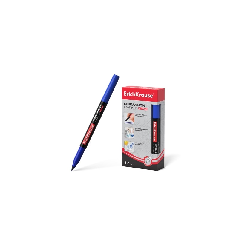 ErichKrause P-100 marcador permanente Punta redonda Azul 12 pieza(s)