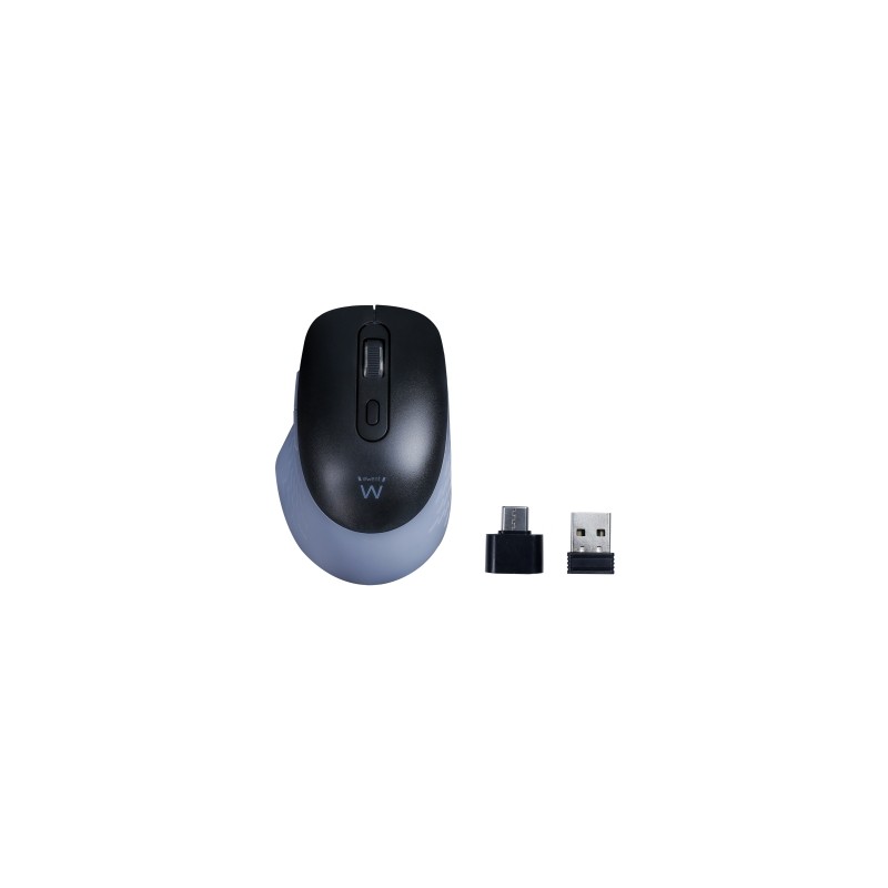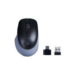 Ewent Ratón óptico inalámbrico con conectividad multidispositivo clics silenciosos y adaptador tipo C