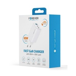 FOREVER Adaptador Corriente 2xTIpo C+1xUsb A 65W Blanco