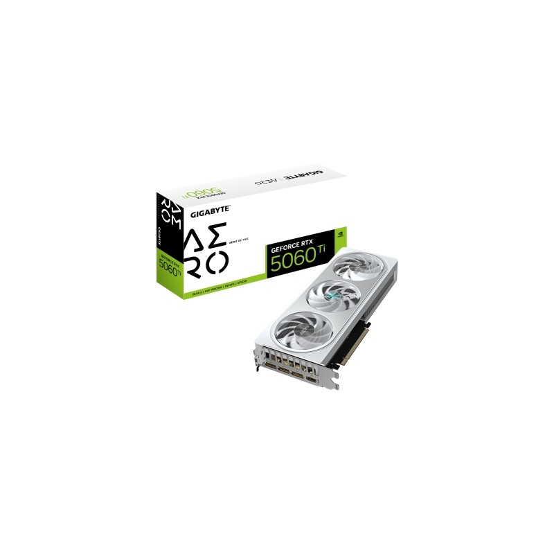 GIGABYTE GeForce RTX 5060 Ti AERO OC 16G Tarjeta Gráfica – 16 GB GDDR7 128 bits PCI-E 5.0 2647MHz Frecuencia del núcleo 3