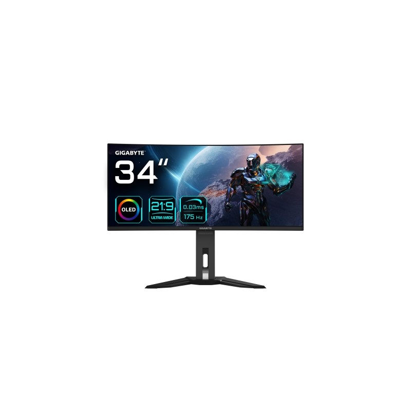 GIGABYTE Monitor de juegos curvo OLED WQHD MO34WQC de 34" - 3440 x 1440 175Hz 0.03ms KVM 250 cd/m² FreeSync Premium Pro Disp